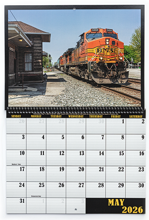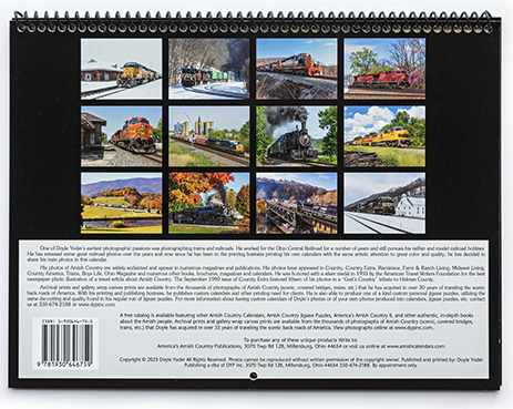 He finally shares some of his great railroad photography in a new Train Calendar. 9" x 12" Opens to 12" x 18".